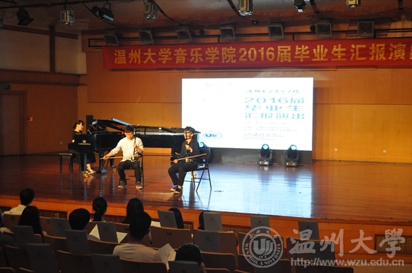 双人舞《往日时光》拉开了本场演出的序幕,黄诗迪、朱艺婷两位同学将12级毕业生对四年大学时光的眷恋和怀念恰如其分地融入了舞蹈当中,这样的开场感动了12级同学,也打动了在场的所有人。参演的节目共有11个节目,其中舞蹈类共3个,朝鲜族群舞《长鼓情》还特别邀请了李恒子老师出演,大家欣赏舞蹈的同时也感受到了师生间浓浓的情谊。在5个器乐类节目中,除了萨克斯独奏、钢琴独奏、二胡重奏、钢琴四手联弹外,还有古筝与钢琴合奏的《秦土情》,中西方乐器的碰撞没有让中国传统民族音乐失色,反而增加了一种别样的艺术韵味,令人回味无穷。另外还有3个声乐类节目,分别为美声独唱《故乡》、通俗独唱《阿楚姑娘》,原创歌曲《在那山道旁》的词曲作者为易攀攀同学,她的演唱充分展示了我们温州大学暗网禁区
